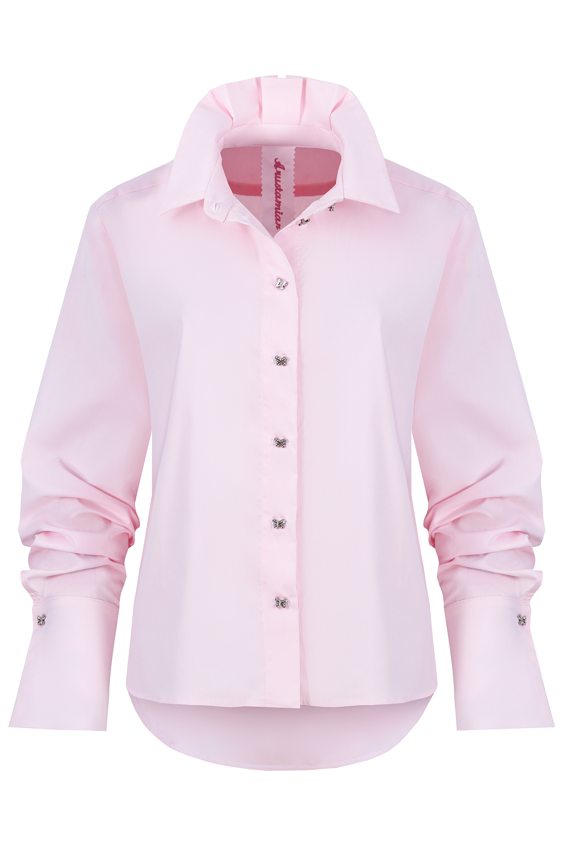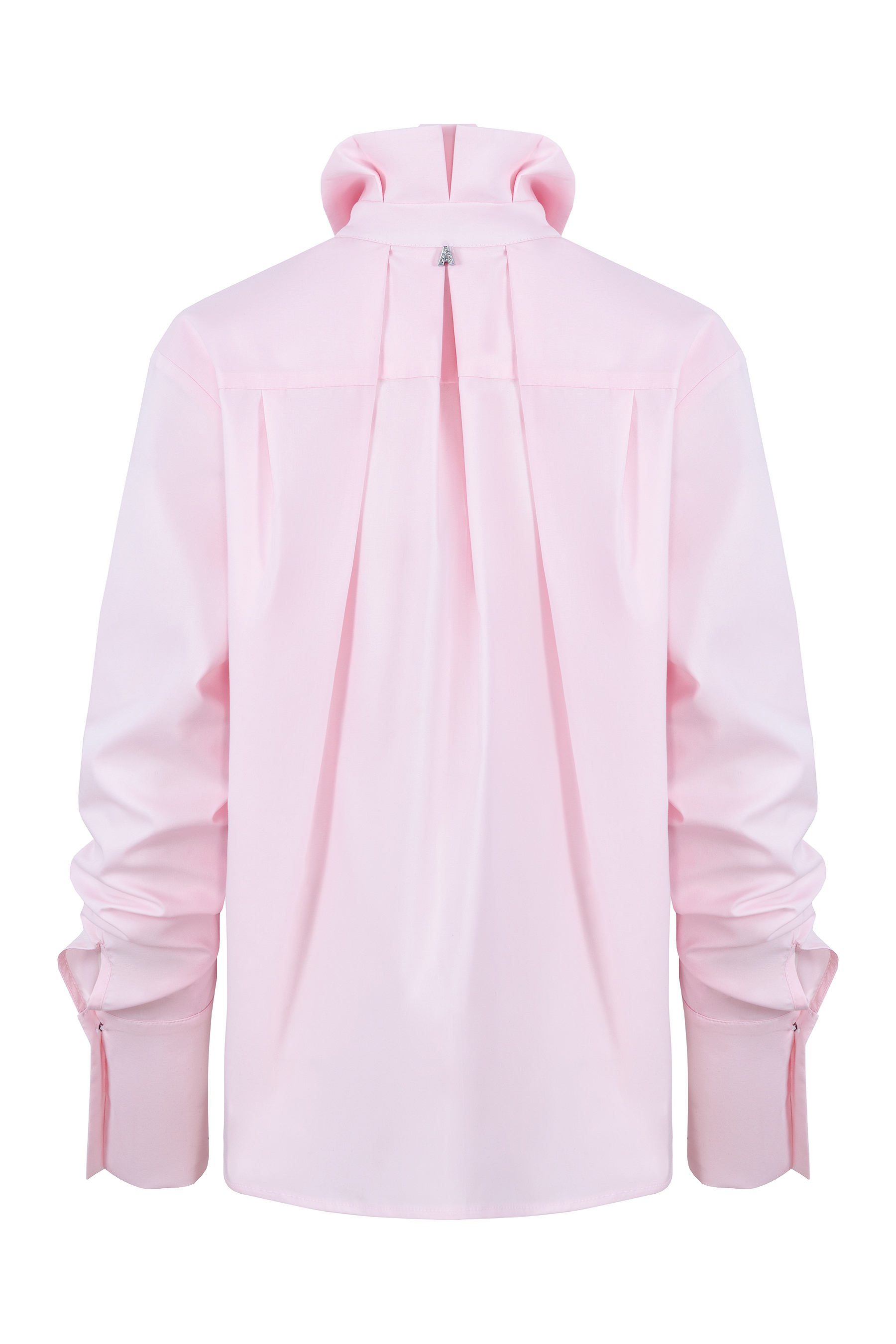 Forma koszuli jest lekko oversize’owa, z naciskiem na dopracowany tył — kontrafałda i układane elementy nadają jej objętości oraz naturalnego ruchu.